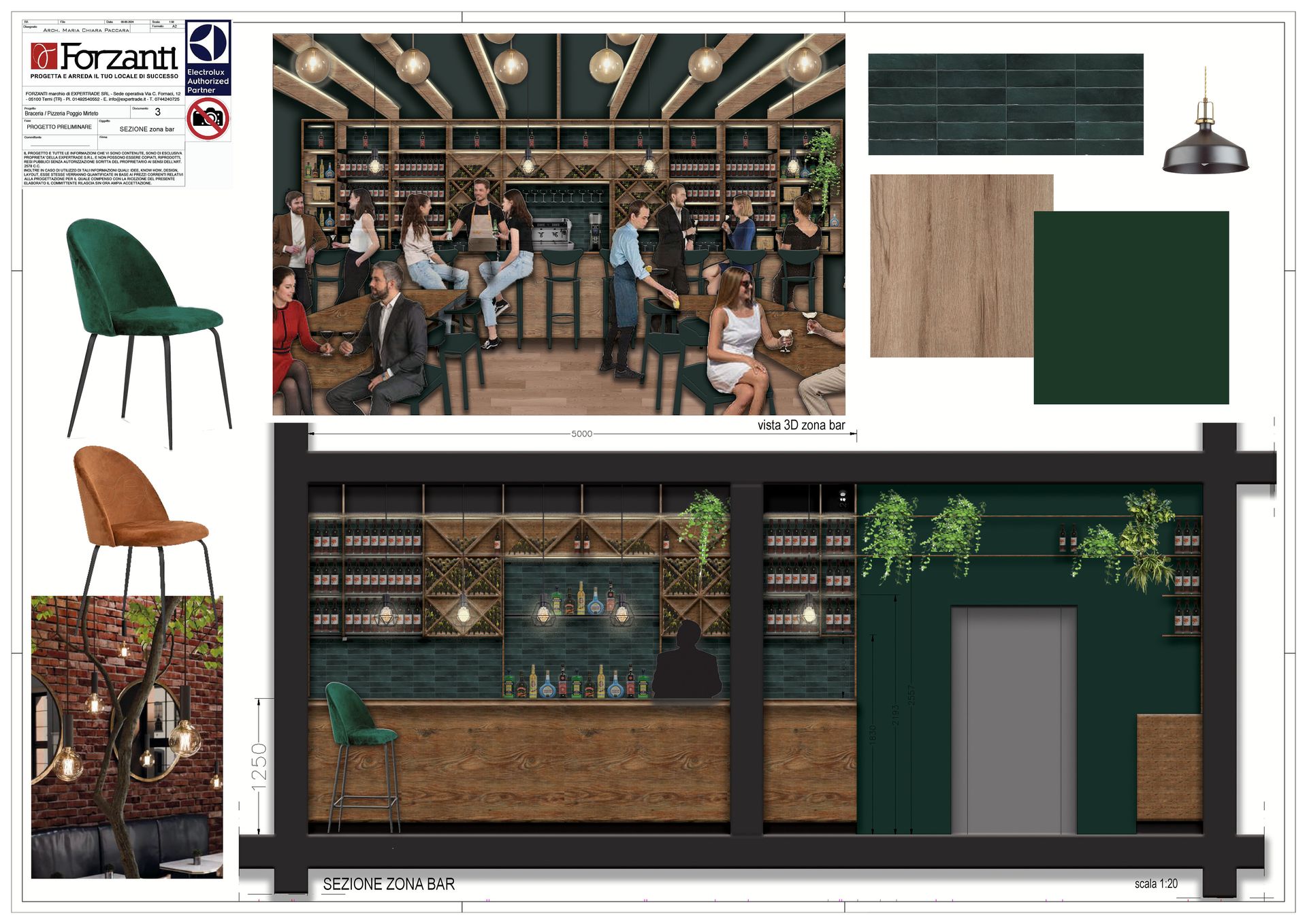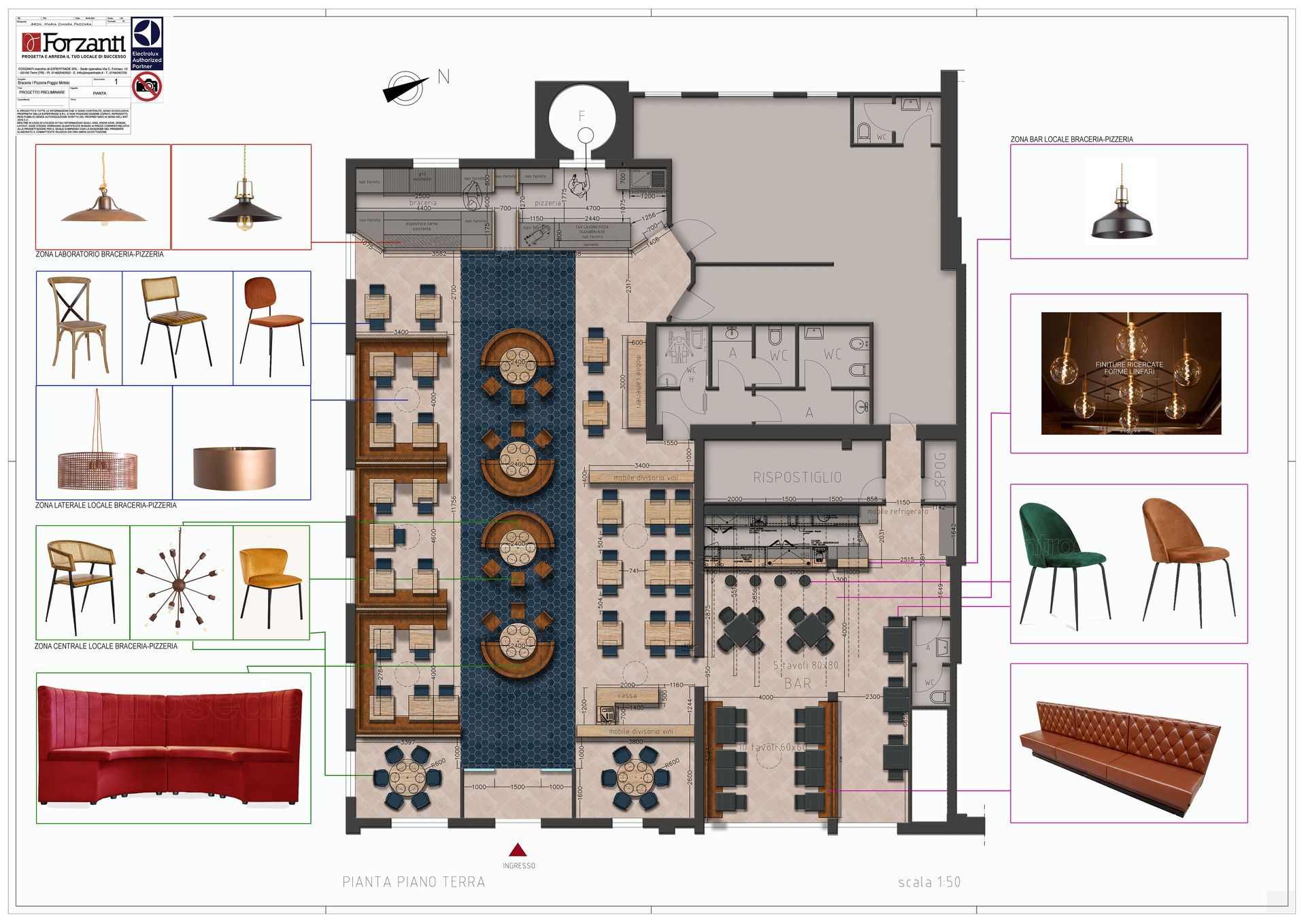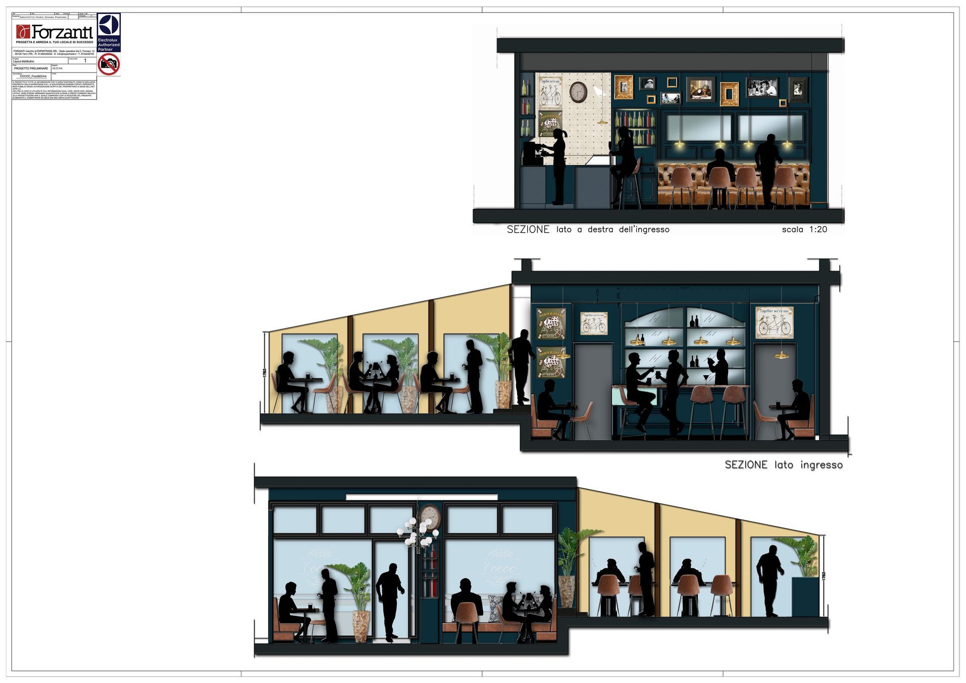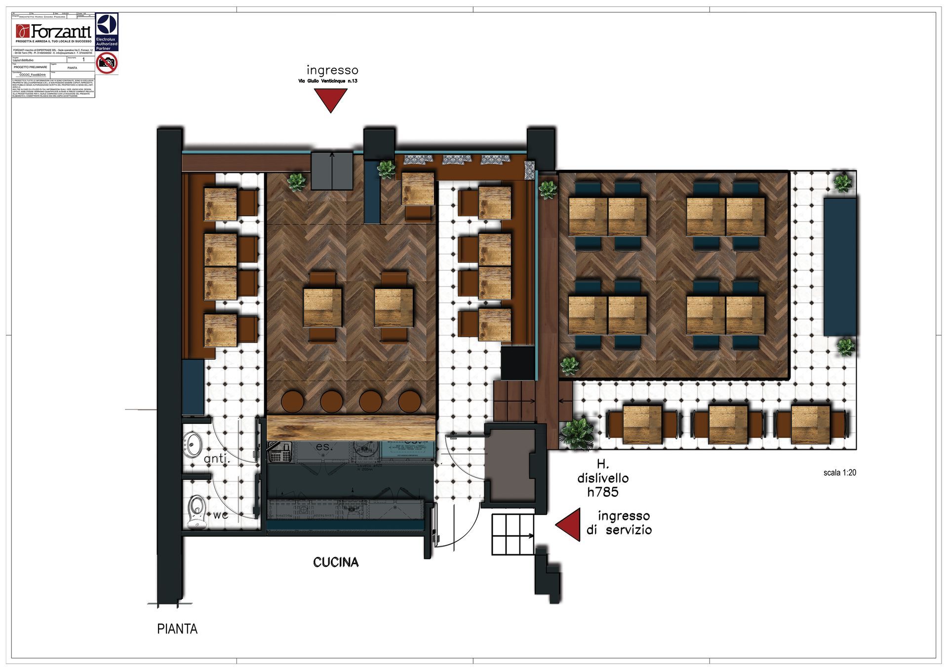 - LAYOUT: Studio del layout del locale con Distribuzione interna degli Spazi.