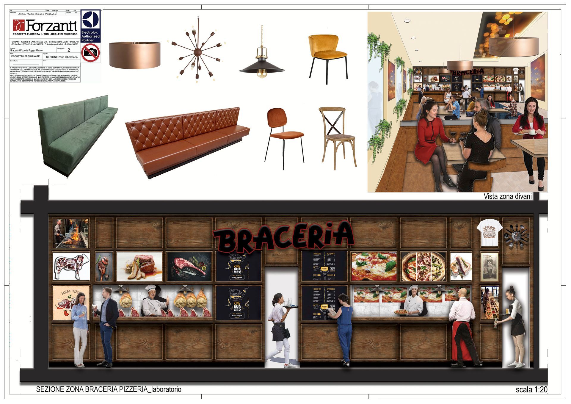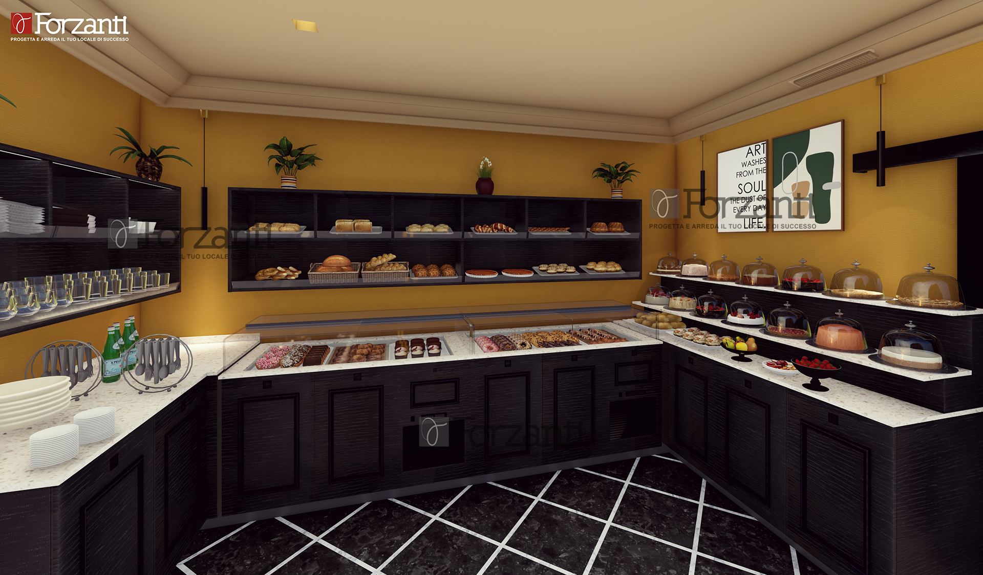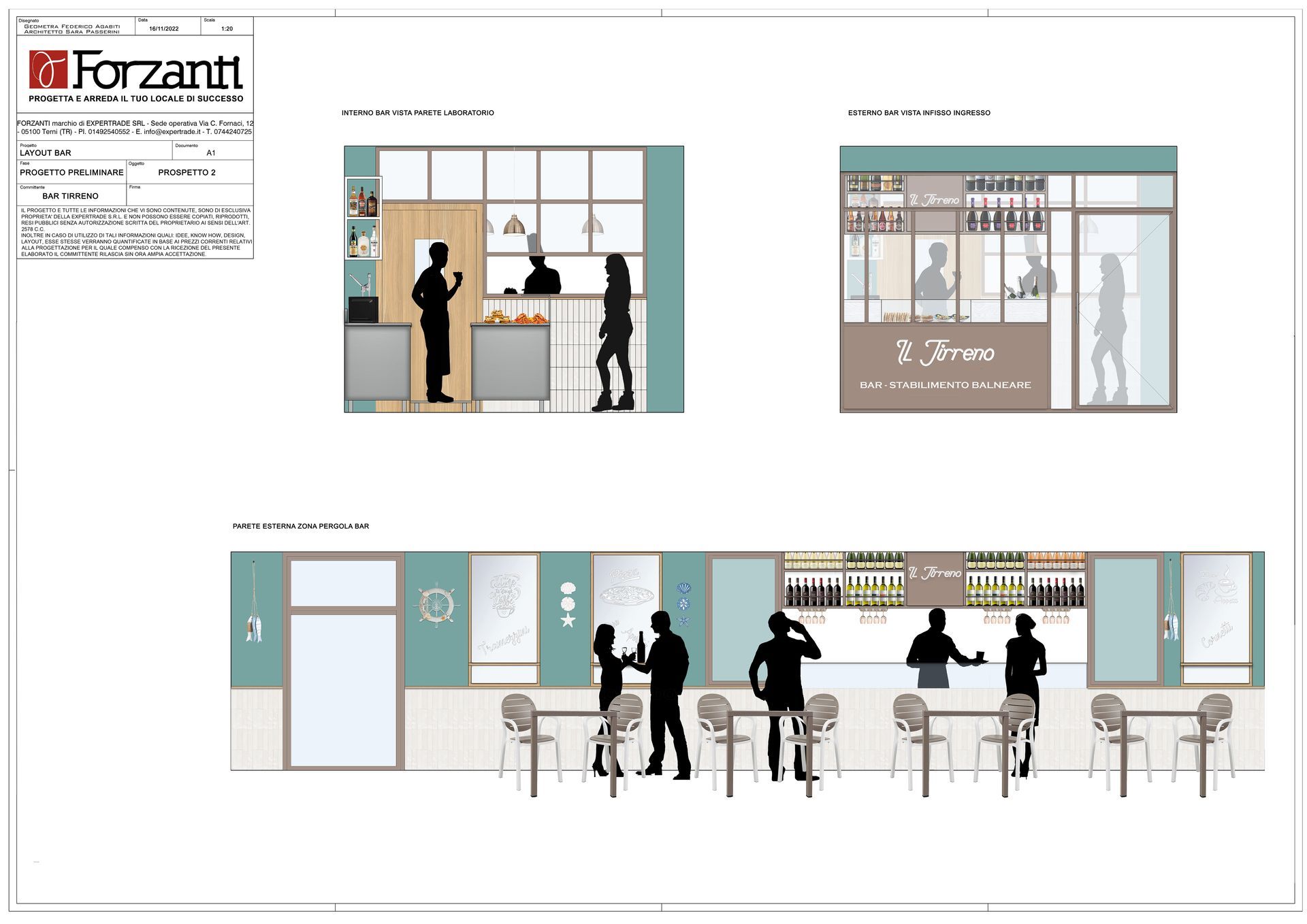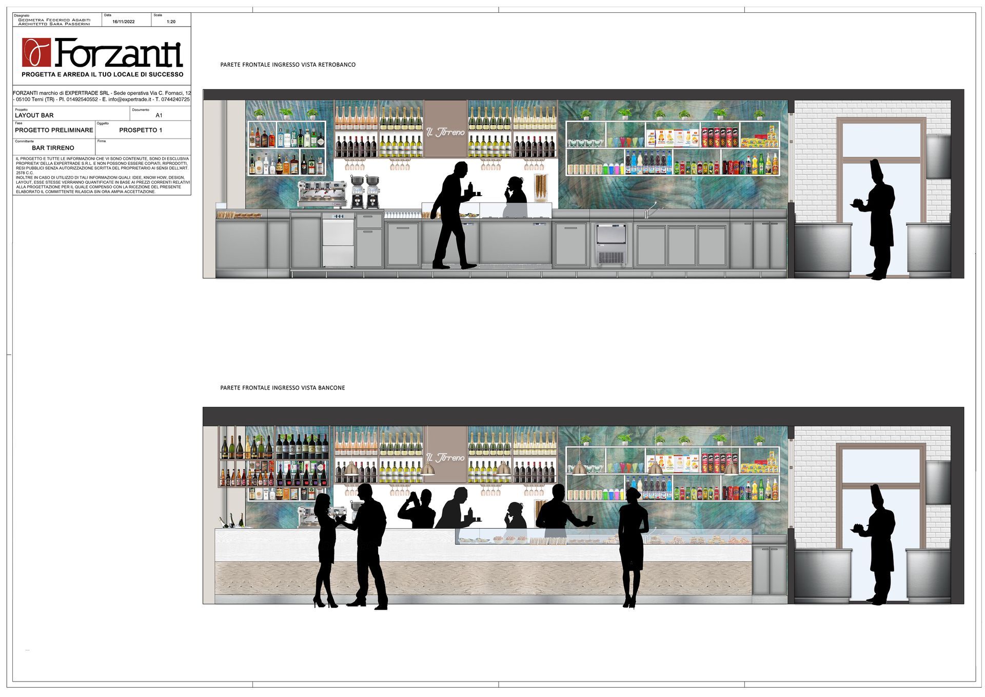 - LAYOUT: Studio del layout del locale con Distribuzione interna degli Spazi.